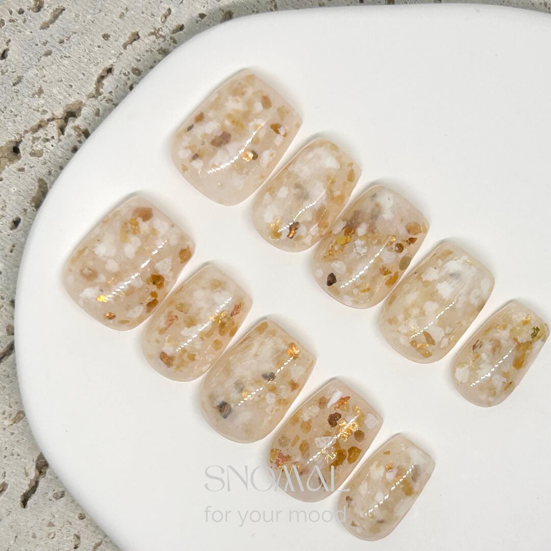 肌になじむベージュをベースに、繊細な天然石ニュアンスをプラスしたデザイン。