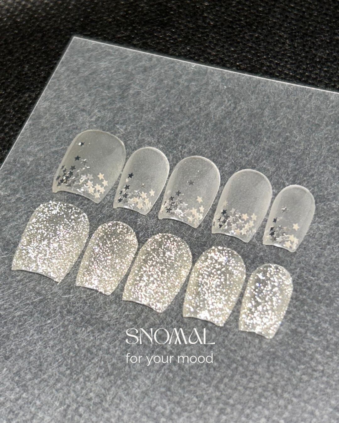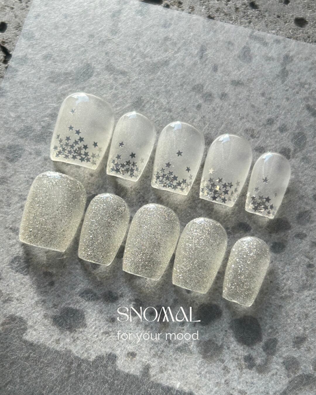極小サイズの星のスパンコールと、フラッシュグリッターを閉じ込めたクリアネイル。