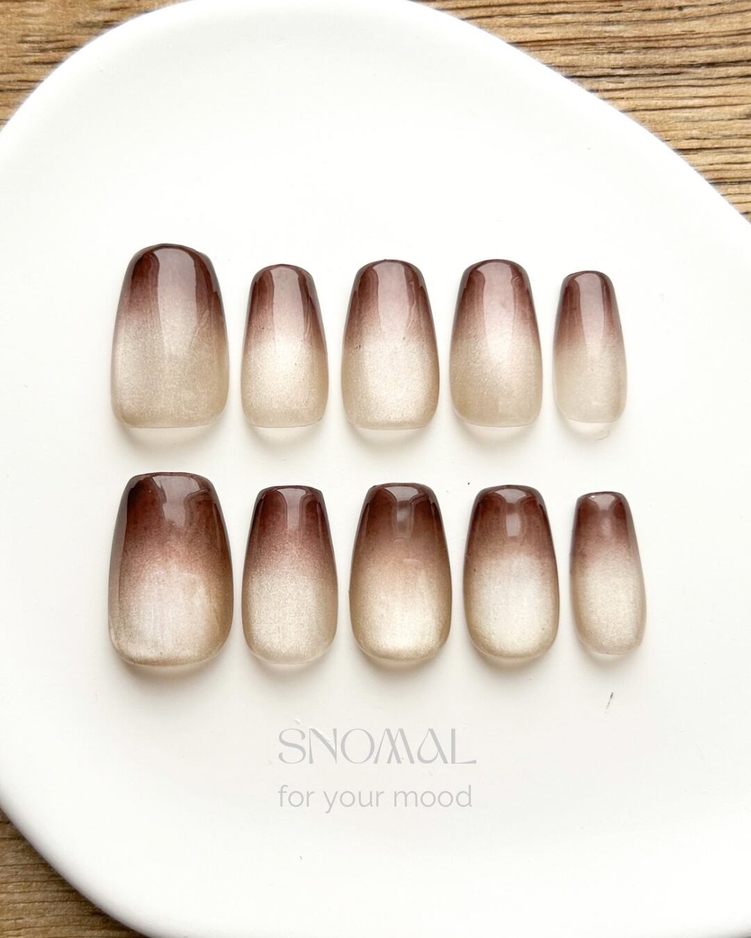 ビターなブラウンが爪先から溶けるグラデーション。静かな艶が指先に深みのあるムードを纏わせます。
